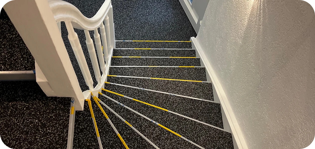 Langlebig. Rutschfest. Fugenlos. Die moderne Art der Treppensanierung mit EPX Steinteppich.