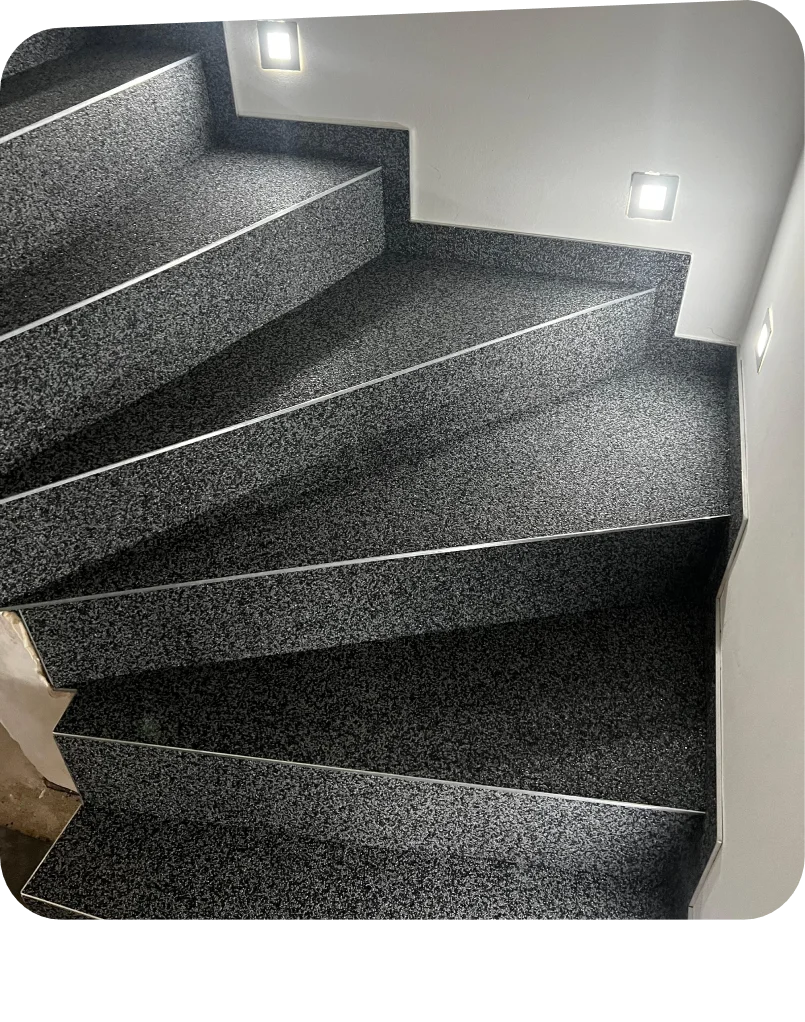 - Sanierung alter Treppen: Steinteppich ist ideal für die Überarbeitung von Beton- oder Fliesenstufen